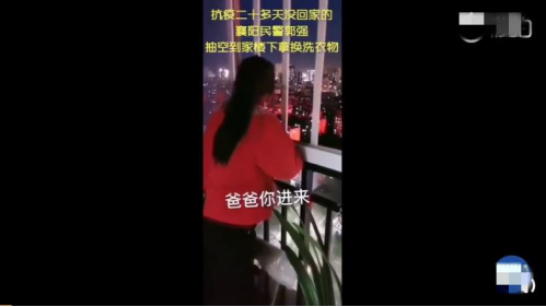 这次回家,郭强早就和妻子约好好不再上楼,而是在楼下收取换洗衣物。站在窗台上的妞妞,看到爸爸没有进来,急得直喊:“爸爸,你进来,你回来!”屡次呼叫无效之后,妞妞还特意找来了自己的玩具小喇叭,期望爸爸能够回头看看自己。
