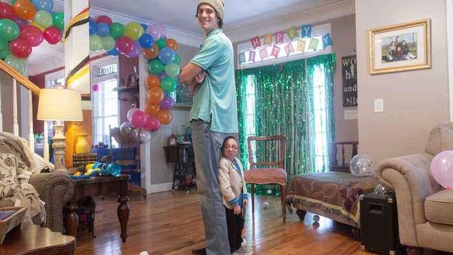 据外国媒体3月11日报导,美国乔治亚州的“小矮人”尼克·史密斯和自己的母亲、弟弟一同庆祝了28岁生日,此前医师曾表明,他的寿数不会很长。