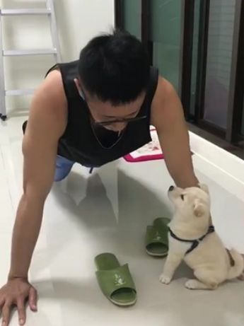 Kobe是只黏人的柴柴,往常便喜爱跟在爸爸身边。