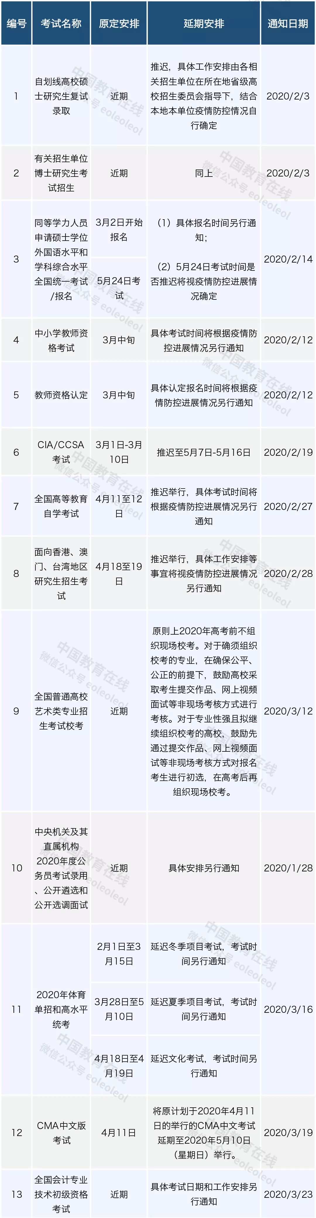 疫情暴虐之下,企业推延复工,校园开学时刻再三延期,那么关于我们重视的各类考试又受何影响?在此为我们进行了搜集整理: