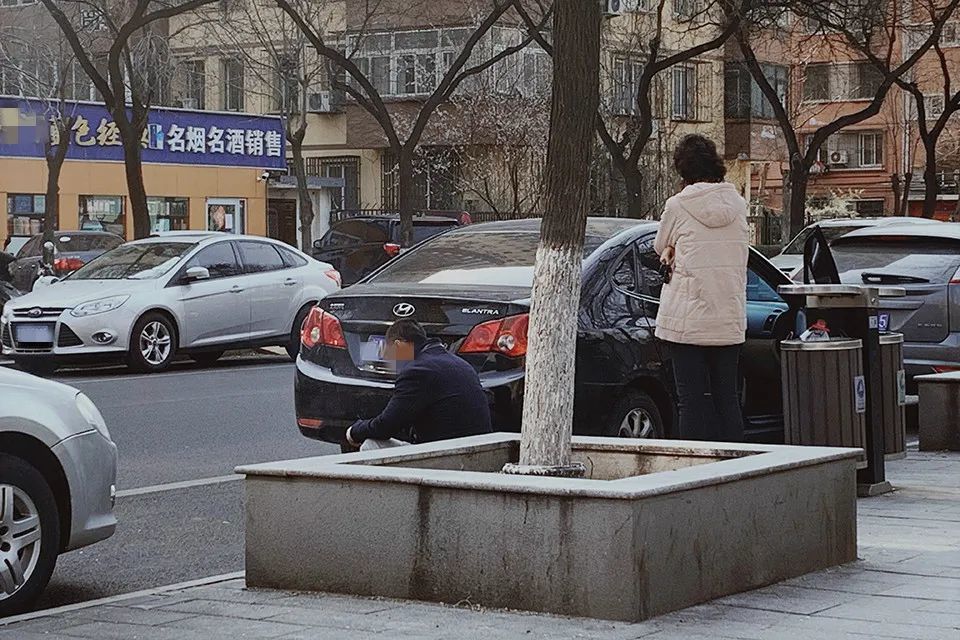 ▲走出北京市海淀区婚姻挂号中心,男人摘下口罩,蹲在街边吸完了一支烟,女性等在他死后。(南方周末记者谭畅/图)